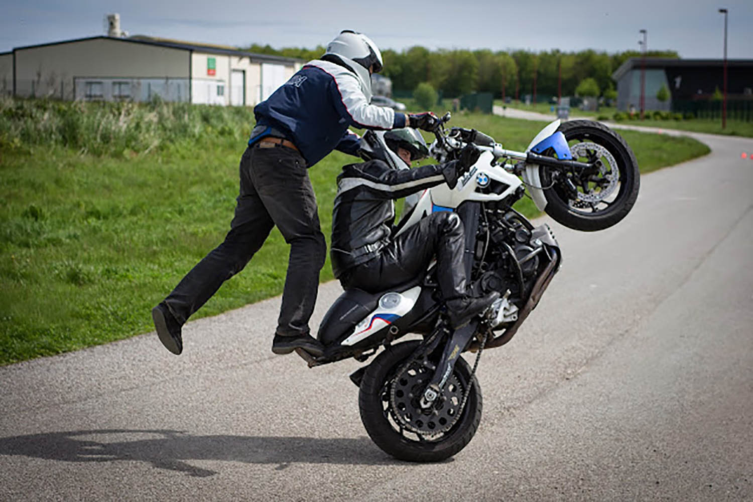 Nos sessions sont encadrées par BigJim , pilote officiel BMW et diplômé d’État. Avec lui, vous apprendrez à maîtriser des techniques avancées telles que le wheeling , le stoppie , le drift et bien d’autres encore, le tout dans un cadre sécurisé et convivial.