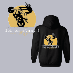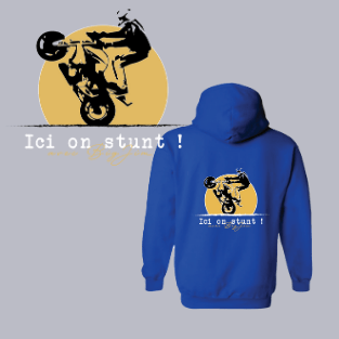 Sweat à capuche Big Jim « Ici on stunt » bleu ou noir.